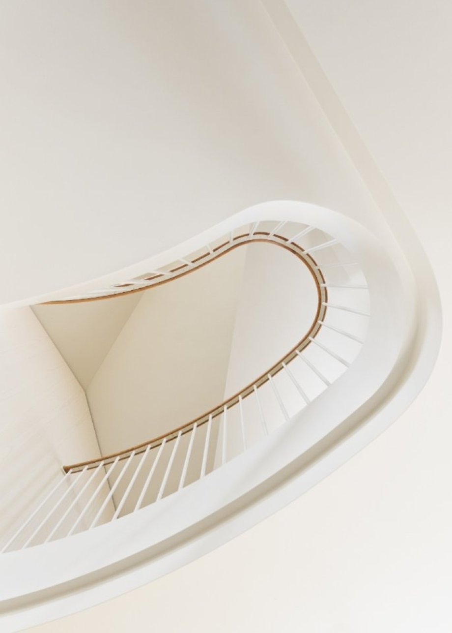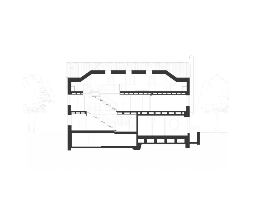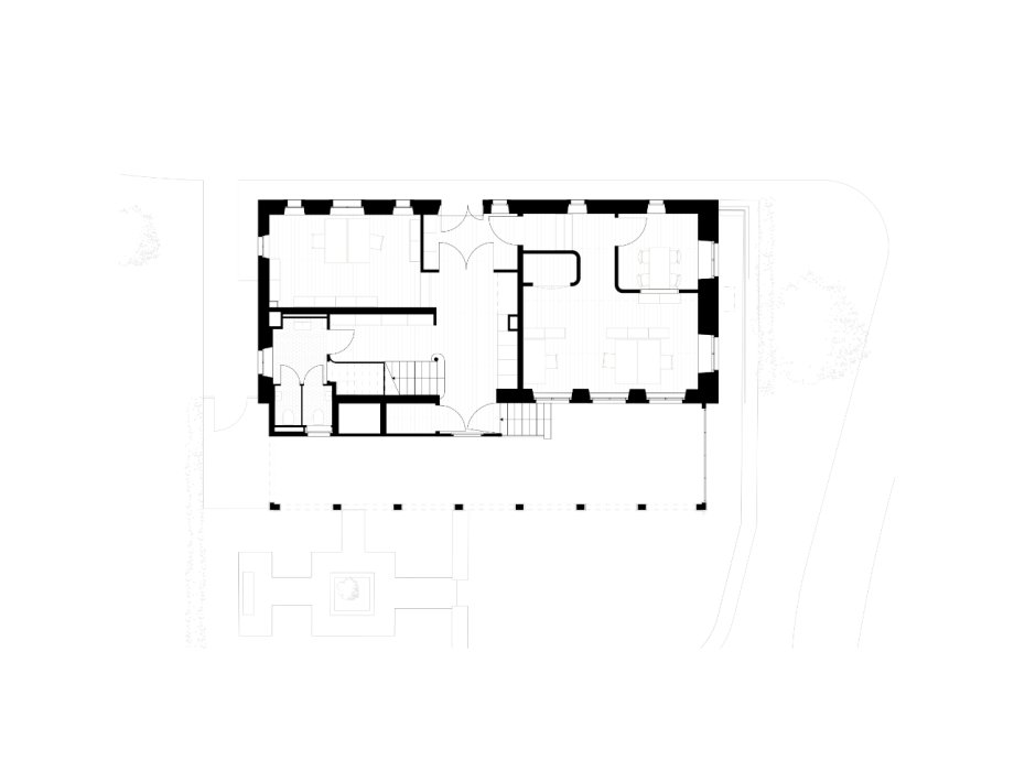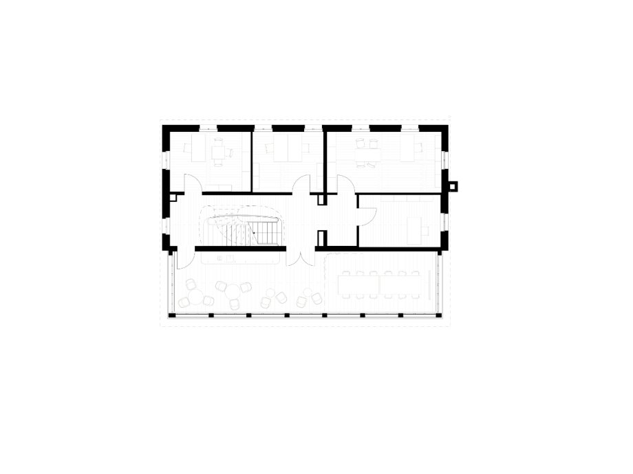 Ziel war es, funktionale und flexible Arbeitsräume zu schaffen und zugleich die architektonische Identität zu bewahren. Die neue Treppenanlage und die überarbeiteten Innentüren zeigen exemplarisch das Zusammenspiel historischer Elemente mit heutigen Anforderungen. Der ausgebaute Dachstock mit Lukarnen und Giebelfenstern bietet helle Arbeitsplätze und eine effiziente Archivablage, eine neue zentrale Treppe verbindet alle Geschosse und in der verglasten Veranda entstand ein Besprechungsbereich mit Blick auf den Rhein.